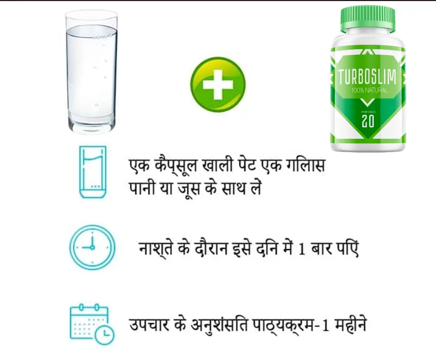 Turboslim न केवल फैट बर्निंग को बढ़ावा देता है, बल्कि शरीर को बड़ी संख्या में पुरानी बीमारियों जैसे मधुमेह, हृदय रोग और कैंसर से भी बचाता है। चूंकि Turboslim की संरचना में केवल पौधे की उत्पत्ति के प्राकृतिक पदार्थ शामिल हैं, इसलिए इसका कोई चिकित्सीय मतभेद नहीं है।
